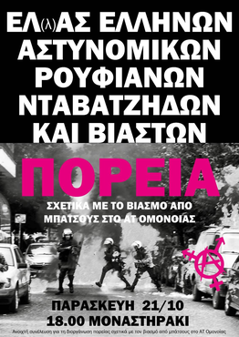 Κάλεσμα στην πορεία για το βιασμό στο ΑΤ Ομόνοιας στις 11/10 [Παρ.21/10-6μμ|Μοναστηράκι]