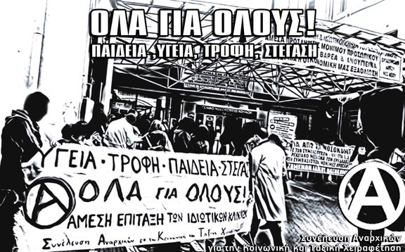 Ενάντια στο κρατικό και καπιταλιστικό σύστημα που δεν έχει να προσφέρει τίποτα περισσότερο από φτώχεια, εξαθλίωση και θάνατο να οξύνουμε τις κοινωνικές και ταξικές αντιστάσεις για το γκρέμισμα του χρεοκοπημένου κόσμου της εξουσίας. Να αγωνιστούμε συλλογικά και από τα κάτω ενάντια στους δυνάστες μας, να δυναμώσουμε και να περιφρουρήσουμε τις κοινωνικές και ταξικές αντιστάσεις που βρίσκονται στο στόχαστρο της καταστολής και να οργανώσουμε νέες. Χωρίς να έχουμε αυταπάτες για τον ρόλο των θεσμών, χωρίς να προσφέρουμε καμία συναίνεση στη διαχείριση της ζωής μας, να μην κάνουμε ούτε βήμα πίσω σε αυτά που έχουμε κατακτήσει και που διαρκώς διακυβεύονται και να κάνουμε τους χώρους που εργαζόμαστε, φοιτούμε και ζούμε εστίες αντίστασης και αγώνα. Μόνο η συνολική ανατροπή του κράτους και του καπιταλισμού, η κοινωνική απαλλοτρίωση του πλούτου που εμείς οι ίδιοι παράγουμε και απομυζά μια κάστα εξουσιαστών και η οργάνωση του αγώνα για την Κοινωνική Επανάσταση για έναν κόσμο κοινοκτημοσύνης, ειρήνης, αλληλεγγύης και ελευθερίας μπορούν να δικαιώσουν τους πόθους και τις πραγματικές ανάγκες των καταπιεσμένων και εκμεταλλευόμενων.
