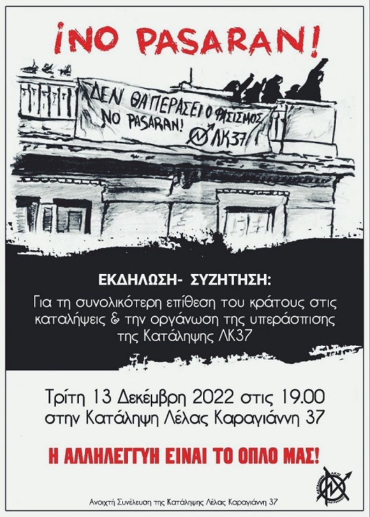Για τη συνολικότερη επίθεση του κράτους στις καταλήψεις & την οργάνωση της υπεράσπισης της Κατάληψης ΛΚ37