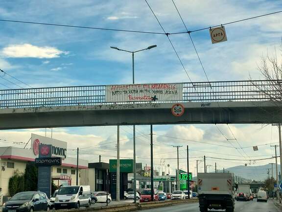 Ανάρτηση πανό στην πεζογέφυρα της Π. Ράλλη