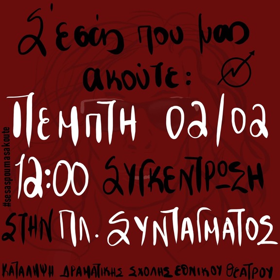 Στηρίζουμε το κάλεσμα της Κατάληψης της Δραματικής Σχολής του Εθνικού Θεάτρου, Πέμπτη 02/02/23 Πλατεία Συντάγματος στις 12:00