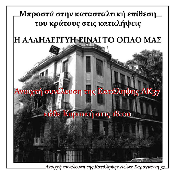 Ανοιχτή συνέλευση της Κατάληψης ΛΚ37 κάθε Κυριακή στις 18:00