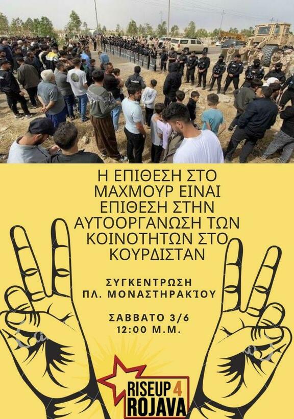 Στις 20 Μαΐου το Ιρακινό κράτος περικύκλωσε των καταυλισμό Κούρδων/ισσών προσϕύγων στο Μαχμούρ. Άρματα μάχης, ο στρατός και η αστυνομία, απέκλεισαν όλες τις εισόδους και εξόδους με σκοπό το κτίσιμο ενός τοίχους από συρματοπλέγματα για την περαιτέρω απομόνωση του καταυλισμού. Από την πρώτη μέρα της περικύκλωσης ο λαός του καταυλισμού του Μαχμούρ, προτάσσει αντίσταση βάζοντας τα σώματα τους μπροστά στα άρματα μάχης, πετώντας πέτρες στα κανονιοϕόρα, καλώντας σε αλληλεγγύη.