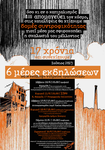 Κατάληψη Κτήματος Πραποπούλου Προφήτη Ηλία 49 απέναντι από την είσοδο του Θεάτρου Ρεματιάς Λεωφορείο 402: στάση "Γιασεμιών" Τρόλλευ: 18 και 19