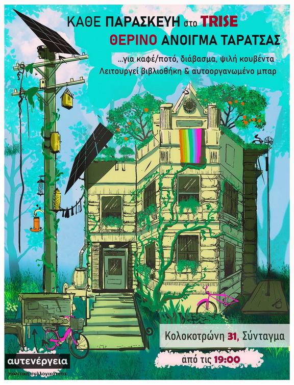 Τις Παρασκευές, από τις 7 το απόγευμα, σας καλούμε να έρχεστε στον χώρο μας που θα παραμένει ανοιχτός για καφέ/ποτό, διάβασμα και ψιλή κουβέντα! Ξεκινάμε από αυτή την Παρασκευή 16/06.