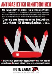 Το ρατσιστικό μίσος δεν έχει καμιά θέση ανάμεσά μας, την ώρα που ντόπιοι και μετανάστες εργαζόμενοι παλεύουμε μαζί ενάντια στα χαράτσια, τα μνημόνια και τα μέτρα βαρβαρότητας. Η κυβέρνηση Παπαδήμου με υπουργοποιημένους τους θαυμαστές της χούντας των συνταγματαρχών και του Μεταξά βουλευτές του ΛΑ.Ο.Σ., κάνει ότι μπορεί για να αποπροσανατολίσει τον κόσμο από τους πραγματικούς υπεύθυνους της φτώχειας και της ανεργίας. Η ΕΛ.ΑΣ. διευκολύνει σε κάθε ευκαιρία τους νεοναζί της Χρυσής Αυγής, όπως πρόσφατα στη Νίκαια, που έστειλαν διμοιρίες των ΜΑΤ να χτυπήσουν αντιφασιστική διαδήλωση. Την ίδια στιγμή περιφρουρούσαν φασιστοσύναξη θαυμαστών του Χίτλερ που βεβήλωναν το μνημείο του Μπλόκου της Κοκκινιάς.