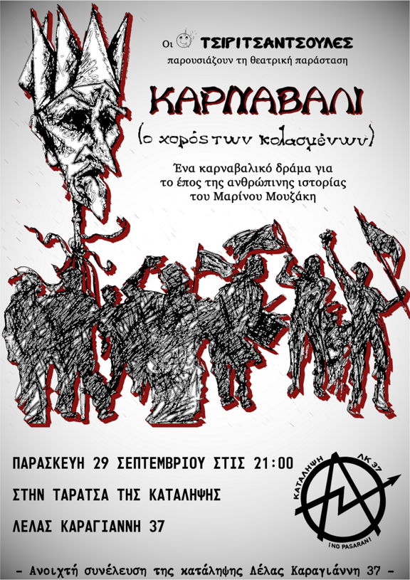 Ενα καρναβαλικό δράμα για το έπος της ανθρώπινης ιστορίας του Μαρίνου Μουζάκη• Στον χώρο της Κατάληψης θα υπάρχει κουτί οικονομικής ενίσχυσης και συλλογή ειδών πρώτης ανάγκης για τους πληγέντες της Θεσσαλίας •