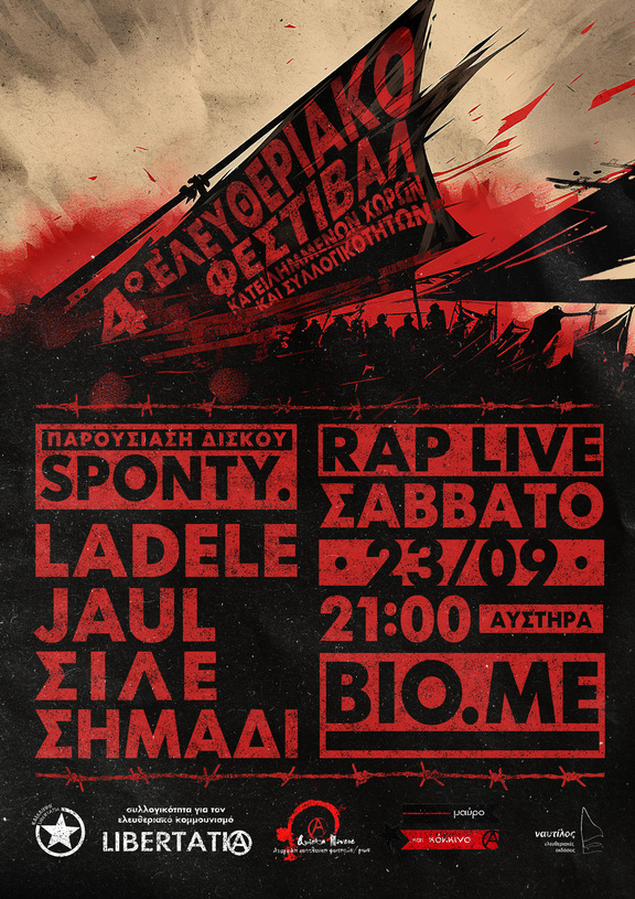Το Σάββατο 23/09/23 στο Κατειλημμένο Εργοστάσιο ΒΙΟ.ΜΕ.. στα πλαίσια του 4ου Ελευθεριακού Φεστιβάλ Κατειλήμμενων Χώρων και Συλλογικοτήτων