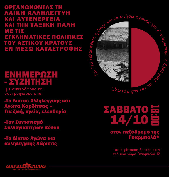 Οργανώνοντας τη λαϊκή αλληλεγγύη και αυτενέργεια και την ταξική πάλη με τις εγκληματικές πολιτικές του αστικού κράτους εν μέσω καταστροφής...