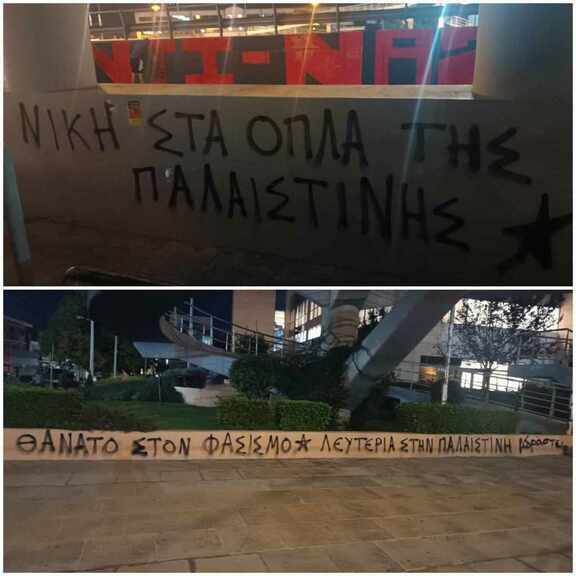 Λίγες ώρες μετά τη σφαγή εκατοντάδων αμάχων (όλων των ηλικιών) στο νοσοκομείο Al Ahli Arab - Al Maamadani της μαρτυρικής και αδούλωτης Λωρίδας της Γάζας, με τον εσκεμμένο βομβαρδισμό του από τους σιωνιστές εγκληματίες πολέμου του κράτους - απαρτχάιντ του Ισραήλ που διαπράχθηκε με την συνενοχή και στήριξη των ιμπεριαλιστών συμμάχων τους σε ΗΠΑ-ΝΑΤΟ-ΕΕ, κρεμάσαμε δυο πανιά στο Κουκάκι και τον Σταθμό του ΗΣΑΠ στα Πετράλωνα, για τη Διεθνιστική Αλληλεγγύη, για τη Λευτεριά στην Παλαιστίνη.