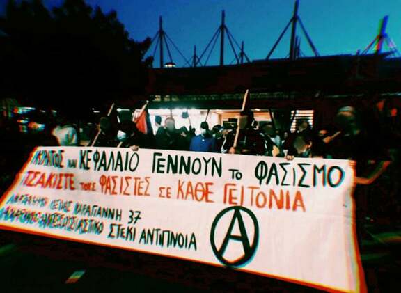 Ως αναρχικοί/ες για άλλη μία φορά να σταθούμε απέναντι στα παρακρατικά τάγματα εφόδου στις γειτονιές, στα σχολεία, στις σχολές, στους χώρους εργασίας. Δεν ξεχνάμε πως ο αγώνας ενάντια στον φασισμό κερδίζεται στους δρόμους και είναι αναπόσπαστο κομμάτι του συνολικού αγώνα ενάντια σε κράτος και καπιταλισμό, του αγώνα ενάντια στις ανισότητες, την ιεραρχία, τους διαχωρισμούς, τον κοινωνικό εκφασισμό, τη μισαλλοδοξία, τον εθνικισμό και τον κρατικό ολοκληρωτισμό. Χωρίς αυταπάτες πως το σύστημα εκμετάλλευσης και καταπίεσης μπορεί να εξωραϊστεί, χωρίς αυταπάτες πως οποιαδήποτε κυβέρνηση μπορεί να αποτελέσει φραγμό στον φασισμό, απέναντι στον καθεστωτικό "αντιφασισμό" και στις επιδιώξεις του κρατικού μηχανισμού για την εδραίωση της θεωρίας των δύο άκρων να αγωνιστούμε οργανωμένα, συλλογικά, μαχητικά και από τα κάτω, με όπλο μας τη διεθνιστική και ταξική αλληλεγγύη για την ανατροπή του καταπιεστικού-εκμεταλλευτικού συστήματος που γεννά και θρέφει τον φασισμό, για την Κοινωνική Επανάσταση, για την Αναρχία!