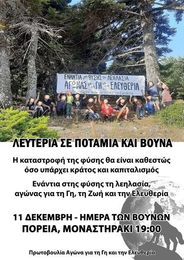 We support the demonstration for the defence of the mountains that will take place onMonday 11 December at 19:00 starting from Monastiraki.