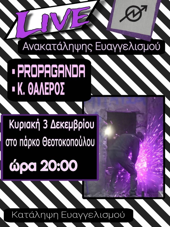 σήμερα, Κυριακή, 3/12 στις 20:00 στο πάρκο Θεοτοκοπούλου