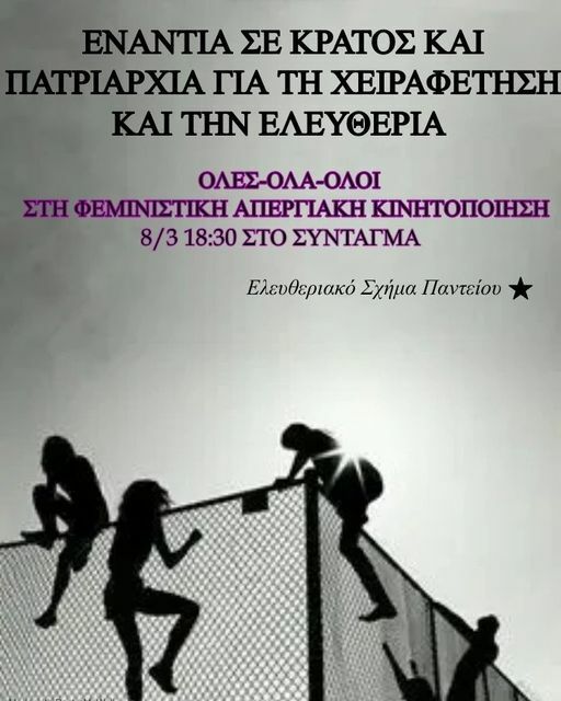 Κάλεσμα για ολα να βγουν στους δρόμους στις 8 Μαρτίου!Πλατεία Συντάγματος, 6:30μμ. Απεργούμε και βγαίνουμε στους δρόμους και αυτή την 8η Μαρτίου και κάθε 8η Μαρτίου ενάντια στην πατριαρχία.