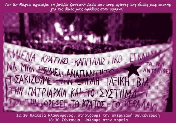 [Ταξική Αντεπίθεση] 8η Μάρτη: Να συναντηθούμε στους δρόμους της γυναικείας και της ταξικής απελευθέρωσης- Για τις νέες εφόδους στον ουρανό!