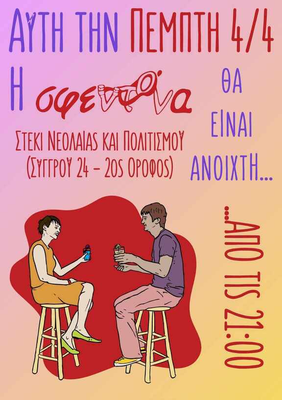 Την Πέμπτη μετά τη διαδήλωση αλληλεγγύης στην δίκαιη παλαιστινιακή αντίσταση (Αγ.Βενιζέλου στις 19:00) η Σφεντόνα θα είναι ανοιχτή για μπαρ και κουβεντούλα.