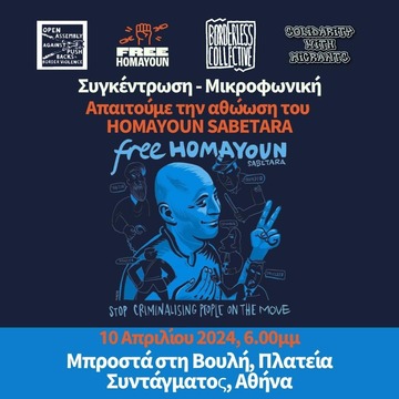 Μπορείτε να βρείτε περισσότερες πληροφορίες για την ιστορία του στο https://www.freehomayoun.org/en. Διαδώστε το κάλεσμα και ακολουθήστε τα @freehomayoun, @openassemblyagainstpushbacks, @borderless.collective και @solidaritywithmigrants για περισσότερες ενημερώσεις!