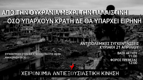Είναι φανερό ότι και το δικό μας κράτος μας προετοιμάζει για πόλεμο. Τα έξοδα του πολέμου, είτε τις τεράστιες εξοπλιστικές δαπάνες, είτε ως πρόφαση της γενικευμένης ακρίβειας στα πάντα, τα πληρώνουμε ήδη από την τσέπη μας. Τα εθνικιστικά αφηγήματα, ο πολεμικός λόγος και οι διαφορές ασκήσεις ετοιμότητας κατακλύζουν το δημόσιο λόγο και την καθημερινότητα μας. Δεν ξεχνάμε ότι στο πλαίσιο των πολεμικών προετοιμασιών, τα σύνορα της χώρας από τον Έβρο ως το Αιγαίο έχουν γίνει ένας μαζικός τάφος ανθρώπων που τρέχουν να γλυτώσουν από τον πόλεμο και τις συνέπειες του.