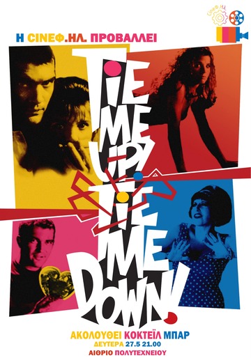 Η CineΦ.Ηλ. αυτή τη βδομάδα επιστρέφει με το ζεστό και αβάσταχτο Tie me up! Tie me down! (1989) του Pedro Almodovar στη τελευταία της προβολή πριν το καλοκαίρι. Ο Ricky (A. Banderas), πρώην τρόφιμος ψυχιατρικής κλινικής, ερωτεύεται με ελαφρώς ανορθόξο και θεμελιακά προβληματικό τρόπο την Marina (V. Abril), γνωστή πρωταγωνίστρια ερωτικών ταινιών που αποπειράται την είσοδο στη μεγάλη οθόνη. Για να τη διεκδικήσει αποφασίζει να την απαγάγει και να κλειδωθούν μαζι στο διαμέρισμα της σε μια απρόσωπη γειτονιά της θερινής Μαδριτης. Σε αυτή τη ταινία ο Αλμοδόβαρ στηλιτεύει τον θεσμό του γάμο και τον παρτιαρχικά φιλτραρισμένο έρωτα, θολώνοντας τα ήδη συγκεχυμένα όρια μεταξύ κανονικότητας και τρέλας.