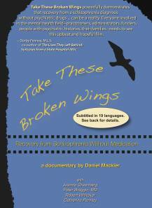 «Πάρε Αυτά τα Σπασμένα Φτερά», είναι ο τίτλος ενός ντοκιμαντέρ μεγάλου μήκους, που γύρισε ο παραγωγός και πρώην ψυχοθεραπευτής Ντάνιελ Μάκλερ, το οποίο δείχνει ότι οι άνθρωποι μπορούν να θεραπευτούν πλήρως από τη σχιζοφρένεια χωρίς ψυχοφάρμακα. Σύμφωνα με την επικρατούσα άποψη στο χώρο της ψυχικής υγείας και τις φαρμακευτικές βιομηχανίες αυτό δεν είναι δυνατόν. Το φιλμ εστιάζει στις ζωές δύο γυναικών -των ηρωίδων μου- που θεραπεύτηκαν από σχιζοφρένεια. Διερευνώνται οι ρίζες της σχιζοφρένειάς τους σε παιδικά τραύματα και περιγράφονται λεπτομέρειες από την πετυχημένη θεραπεία τους με χαρισματικούς ψυχοθεραπευτές. Η πρώτη γυναίκα είναι η Τζόαν Γκρήνμπεργκ (θεραπευμένη πλήρως πάνω από 50 χρόνια), συγγραφέας του μπεστ σέλερ «Ποτέ δεν Σου Υποσχέθηκα έναν Κήπο με Τριαντάφυλλα». Η δεύτερη είναι η Κάθριν Πέννυ (θεραπευμένη πλήρως πάνω από 30 χρόνια), μια ψυχιατρική νοσηλεύτρια, που την ιστορία της θεραπείας της κατέγραψε ο θεραπευτής της, ο Δρ Ντάνιελ Ντόρμαν στο βιβλίο «Η Θεραπεία του Δάντη: Έξοδος από την Τρέλα». Οι αφηγήσεις τους συνυφαίνονται με συνεντεύξεις από γίγαντες στον τομέα της θεραπείας της σχιζοφρένειας, όπως από τον Δρ Πήτερ Μπρέγκιν (συγγραφέα του «Τοξική Ψυχιατρική»), τον Ρόμπερτ Γουίτακερ (δημοσιογράφο και συγγραφέα του «Τρελός στην Αμερική») και τον Δρ Μπέρτραμ Κάρον (συγγραφέα του «Ψυχοθεραπεία της Σχιζοφρένειας: Θεραπεία Επιλογής»). Επίσης στη διάρκεια της ταινίας παρουσιάζονται πάνω από 100 στιγμιότυπα από συνεντεύξεις αγνώστων στην Πλατεία Γουάσιγκτον της Νέας Υόρκης, οι οποίοι μοιράστηκαν τις απόψεις τους για τη σχιζοφρένεια.
