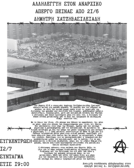 Συγκέντρωση αλληλεγγύης στον αναρχικό απεργό πείνας Δημήτρη Χατζηβασιλειάδη