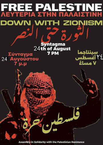 Ελεύθερη Παλαιστίνη! Κάτω ο Σιωνισμός!