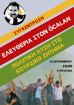 Join us for a gathering in Syntagma Square on the 13th of September, 19:00 to demand the freedom of Abdullah Öcalan and a political solution to the Kurdish Question!
