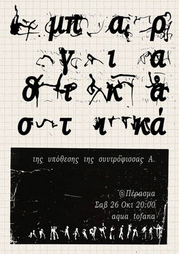 Το Σάββατο 26 Οκτ οργανώνουμε μπαρ οικονομικής ενίσχυσης (στο Πέρασμα, από τις 20:00) με σκοπό να καλύψουμε μέρος των δικαστικών εξόδων.