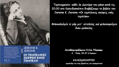 Από αυτή την Δευτέρα και κάθε πρώτη δευτέρα του μήνα ξεκινάμε το τεμπελεχανείο, διαβάζουμε, σχολιάζουμε και αναρωτιόμαστε, πάνω στο βιβλίο "οι τεμπέλικες σκέψεις ενός τεμπέλη" του JEROE K. JOROME, με νωχελική διάθεση και φλεγματικό χίουμορ...