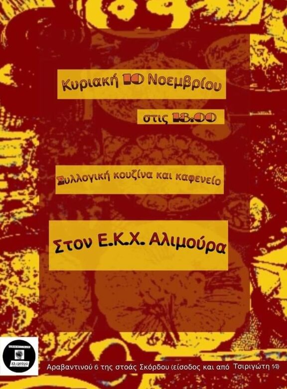 Συλλογική κουζίνα και καφενείο, στην Αλιμούρα, την Κυριακή από τις 18.00.