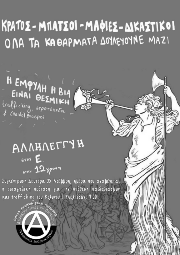 Συγκέντρωση Δευτέρα 25 Νοέμβρη, ημέρα που αναμένεται η εισαγγελική πρόταση για την υπόθεση παιδοβιασμών και trafficking του Κολωνού | Ευελπίδων, 9.00