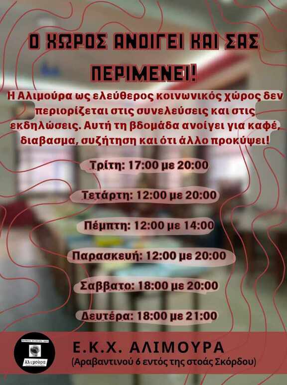 Άνοιγμα του Ελεύθερου Κοινωνικού Χώρου "Αλιμούρα"
