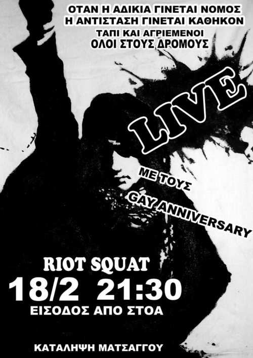 Στο στεκι Riot Squat στην καταληψη ματσαγγου(εισοδος απο την στοα) και θα ακολουθησει dark party