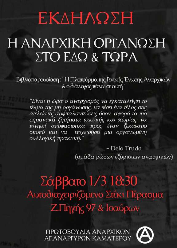 Εκδήλωση - συζήτηση: Η αναρχική οργάνωση στο εδώ & τώρα
