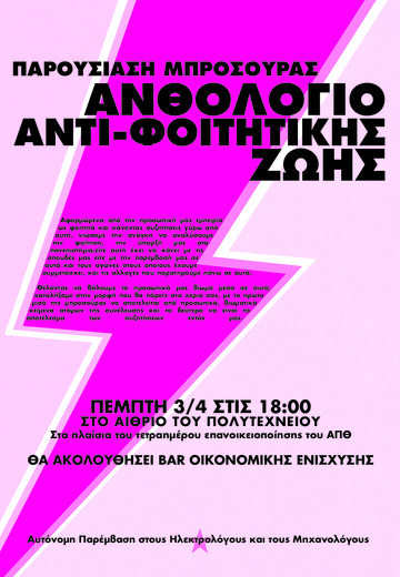Παρουσίαση Μπροσούρας "Ανθολόγιο Αντι-Φοιτητικής Ζωής"