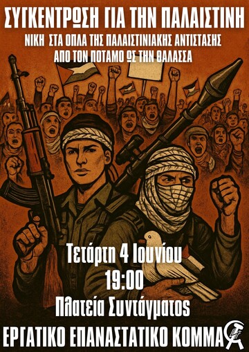 Το ΚΚΕ(μ-λ) καλεί στη συγκέντρωση αλληλεγγύης στον Παλαιστινιακό λαό, την Τετάρτη 4 Ιουνίου στις 19:00 μμ στο Σύνταγμα