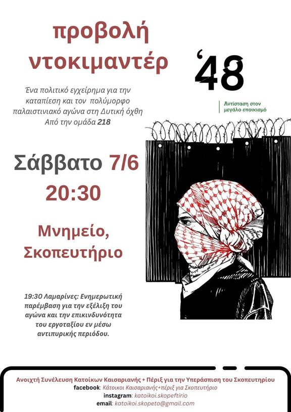 Προβολή ντοκιμαντέρ: «48 | Αντίσταση στον μεγάλο εποικισμό»