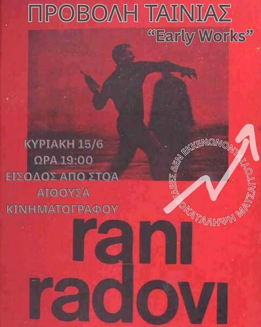 Προβολή της ταινίας "Early Works" την Κυριακή 15 Ιουνίου στις 19.00 στην αίθουσα κινηματογράφου της κατάληψης.