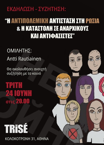 *Ο Antti Rautiainen έζησε στη Ρωσία από το 1999 έως το 2012, μέχρι την απέλασή του, κατηγορούμενος ότι «θέτει σε κίνδυνο την ασφάλεια της Ρωσικής Ομοσπονδίας». Στη Ρωσία, συμμετείχε σε αναρχικές πρωτοβουλίες για την υποστήριξη κρατουμένων. Συνεχίζει να συμμετέχει σε αλληλέγγυες δράσεις και μετά την απέλασή του.