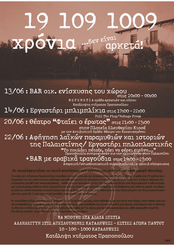 Την Κυριακή 22 Ιουνίου στις 19:00 θα λάβει μέρος στην κατάληψη κτήματος Πραποπούλου η εκδήλωση :