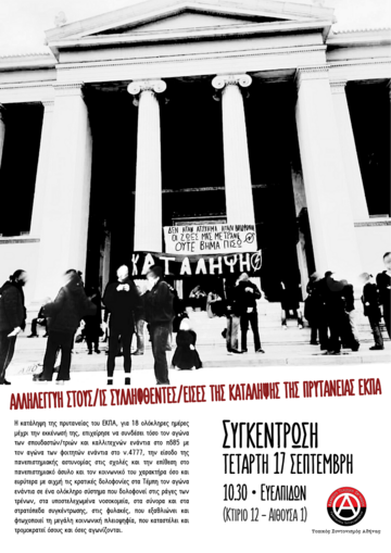 Συγκέντρωση: Τετάρτη 17 Σεπτέμβρη, Ευελπίδων (κτίριο 12 - αίθουσα 1), 10.30