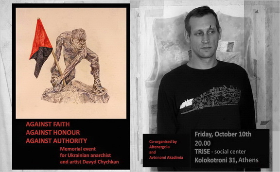 Σας προσκαλούμε όλες-όλους σε μια εκδήλωση μνήμης για τον Ουκρανό αναρχικό καλλιτέχνη Davyd Chychkan όπου: