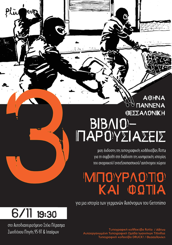 Η τυπογραφική κολλεκτίβα Rotta παρουσιάζει τη νέα της έκδοση "ΜΠΟΥΡΛΟΤΟ ΚΑΙ ΦΩΤΙΑ - ΓΙΑ ΜΙΑ ΙΣΤΟΡΙΑ ΤΩΝ ΓΕΡΜΑΝΩΝ ΑΥΤΟΝΟΜΩΝ", με την συμμετοχή του συγγραφέα & συντρόφου Geronimo.