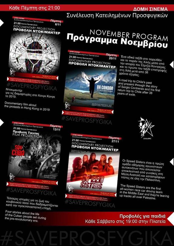 Την Πέμπτη 13/11 στις 21:00 στην Πλατεία των Προσφυγικών (Κούζη & Βεγορίτιδος) θα προβληθεί το ντοκιμαντέρ "Soy Cuba", σκηνοθετημένο απο τον Mikhail Kalatozov το 1964. Το ντοκιμαντέρ είναι στα ισπανικά και αγγλικά, έχει αγγλικούς υποτίτλους και διάρκεια 2 ώρες και 21 λεπτά.
