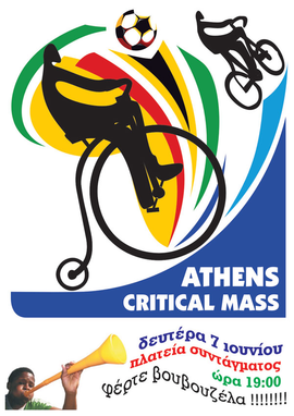 Η ιδέα του critical mass είναι μία μαζική βόλτα με ποδήλατα, ξεκινώντας από ένα προκαθορισμένο σημείο εκκίνησης κάθε μήνα, μια συγκεκριμένη μέρα. Σίγουρα ο σκοπός δεν είναι η ταχύτητα σε μια τέτοια βόλτα, αλλά κυρίως η προβολή του ποδηλάτου. Είναι μια γιορτή για το ποδήλατο στους δρόμους! Το CMR δεν προσπαθεί να εναντιωθεί στα αυτοκίνητα, τα λεωφορεία ή τα υπόλοιπα οχήματα που κινούνται, απλά παίρνει το μερίδιό του στο οδόστρωμα από όπου περνάει. Το critical mass ride είναι μια προσπάθεια διεκδίκησης του δικαιώματός μας να χρησιμοποιούμε το δρόμο, αλλά όχι η στέρησή του στους άλλους!