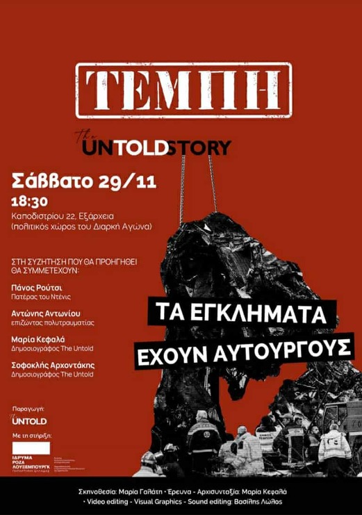 Συζητηση & προβολή ντοκιμαντέρ: "Τέμπη: the untold story"