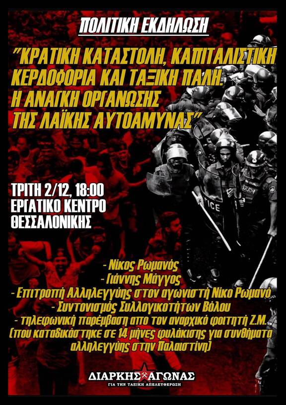 Εκδήλωση: Κρατική Καταστολή, Καπιταλιστική Κερδοφορία και Ταξική Πάλη