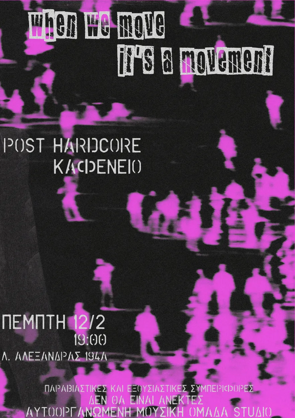 Αυτή την Πέμπτη 12/02 βρισκόμαστε από νωρίς στο υπόγειο της Λ. Αλεξάνδρας 194α για ακόμη ένα post hardcore καφενείο.