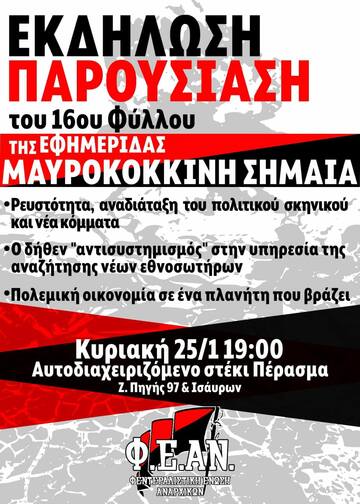 Εκδήλωση-Παρουσίαση του 16ου φύλλου της Μαυροκόκκινης Σημαίας