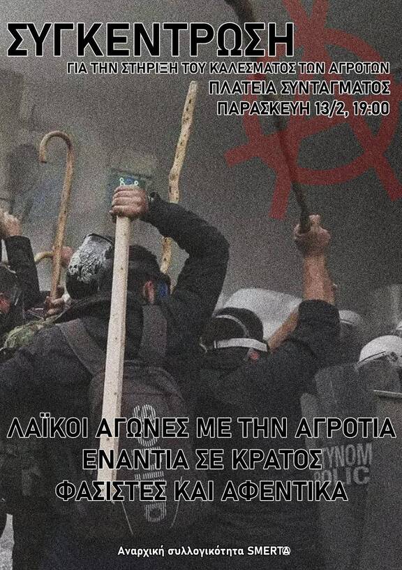 'Ολες/οι στην Συγκέντρωση αλληλεγγύης στον αγώνα των αγροτών 13/2 πλ. Συντάγματος